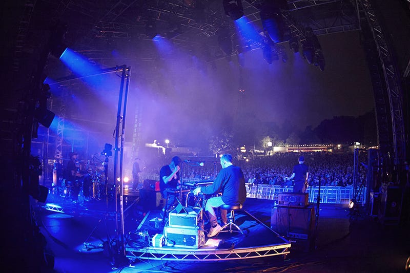 MOGWAI, CHRYSTAL PALACE PARK, LONDON, 7 AUG: If the two things that Mogwai are best recognised as are very Glaswegian and very post-rock, then today's undercard is created in their own image, consisting of 90s Weegie lo-fi scratchers Yummy Fur opening proceedings with shambling charm, followed by new-generation post-rock ingenues caroline and their impressively bowel-rupturing levels of bass, which one suspects has not troubled Crystal Palace Park at 5pm on a Thursday many times before now. Then comes further Lanarkshire content in the shape of fine-I-guess heart-on-sleeve emo-rockers Twilight Sad, and another triumphant set from Lankum, who, after two years of touring this show, now have their Celtic folk meets heavy post-rock drone and huge dynamic range down to a jaw-dropping fine art. In fact, Lankum rather steal the show from Mogwai tonight, who arrive at dusk and deliver what in any other conditions would be a triumph, scabrous and motoric with new material, genuinely monumental and passionate with classics like 'Mogwai Fear Satan' and 'Cody', and faultlessly gracious performers, their only mistake following one of the great current live acts. Sam Walton